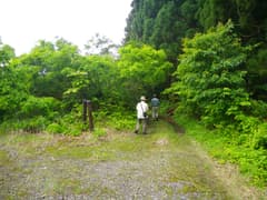 松之山温泉の旅館街の奥から湯峠へ車道を登り、湯峠で左に分岐する林道に入る。すぐに右に大松山への林道を分け、左に溜め池を見て、幅の狭い道をずんずん奥に入ると広い駐車場がある。ここが現在の登山口だ。車を置き、デジカメだけを持って歩き始める。