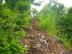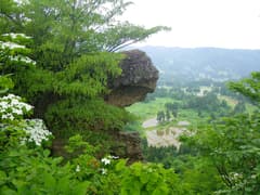 今日は幸いにも雨が上がり、山歩き日和だ。まず、松之山温泉のかつての名所?の岩見堂岩を探訪する。一昨年に松之山温泉に来た時も行こうとしたのだが、登山口を探すのに右往左往して、なんとか登山口は見つけたものの、雨に降られて断念したところだ。