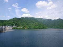 宝川温泉をチェックアウトしたのち、この春に家ノ串に登ったときに訪れた矢木沢ダムを再訪した。ダムの堤上から眺める奥利根県境の山々は、稜線上にまだ雪を残している。ダム堤を左岸に渡るとダム建設殉職者の慰霊碑があり、振り返ると家ノ串の頂上が見えた。こちらはさすがに雪はない。