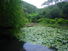 吾妻公園の駐車場に車を停め、吾妻山に向かって歩き始める。真夏でも登る人がそこそこいるのは、さすが桐生市民の山。ハス池のハスが見頃だ。水辺は涼やかだが、周囲の森林には湿気が立ち込めて、もわーんとした感じ。