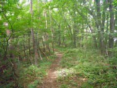 緩やかなアップダウンを経て、大形山の頂上に到着する。調子が良ければ鳴神山まで往復しようかと目論んでいたが、結構、疲れたし、雲行きも怪しいし、雷も怖い。今日はここで引き返すことにする。
