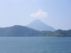 南九州の山2日目、天気は快晴。今日は開聞岳に登る予定だ。空港近くのレンタカー営業所で車を借り出して出発。錦江湾の西岸を走り、桜島の噴煙が降り注ぐ鹿児島市街を抜けて南下する。左に海、右に山を眺めながらの快適なドライブだ。途中で海沿いの道から分れ、池田湖方面に向かう。行く手には意外に急な円錐形の山容の開聞岳が現れる。池田湖の湖畔のドライブインで展望休憩。南国らしく、湖面を渡って吹き付ける風が熱い。