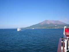 鹿児島港から桜島フェリーで桜島に渡る。このフェリーは、日中は10〜15分間隔で運行されていて、料金も千円ちょっとと安いので、大変利用し易い。噴煙を上げる桜島を眺めながら15分の航海で、桜島港に到着。船旅を楽しむ間がないのが、ちょっと残念。