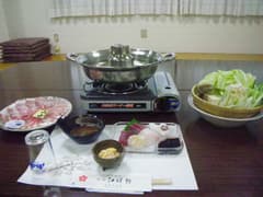 今晩の宿の垂水浜平温泉・別館江洋館は海沿いにあり、日帰り温泉に宿泊施設が付属している感じ。今日の泊まり客は私一人だ。まずはかけ流しの温泉で一風呂浴びて、汗をさっぱり流す。風呂上がりの缶ビールは、やっぱり最高やね。夕食は「黒豚しゃぶしゃぶコース」を頂く。黒豚美味い!量もたっぷりで、大満足でした。