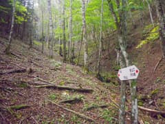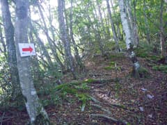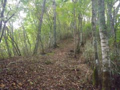 コースはやがて沢を離れて、急な山腹をジグザグに登る。大山と天丸山の分岐に着き、まずは大山に向かう。