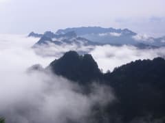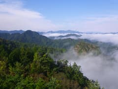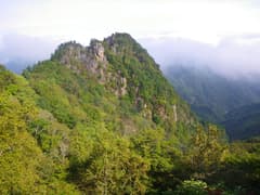 岩稜を登って、二度目の大山の頂きに立つ。西側にも天丸山、帳付山、諏訪山に雲海が押し寄せている様が眺められる。前回、登った時はガスのために展望はほとんどなかったから、今回は展望に恵まれて嬉しい。