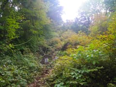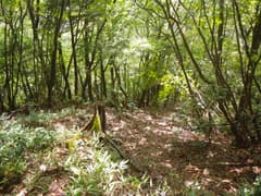 山吹峠に戻り、まず、群馬県側に降りようとしたが、峠道がはっきりしていたのは最初だけで、すぐに植林帯の藪の中に道型が消える。林道まで大した距離ではないので、ファイト一発で突破できなくはないが、藪はあんまり好きじゃない。