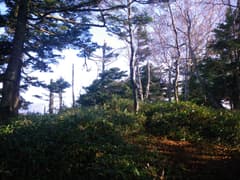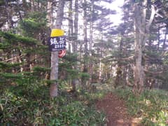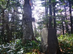 ここから笹原の中に踏み跡を辿る長い急登となる。小さな池を過ぎ、シラビソ林を登ると、錫ヶ岳の頂上に着いた\^o^/。