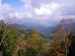 桐生に越して来た翌年の1997年10月、単独行で松木川から皇海山に登った(山行記録)。好天に恵まれ、松木渓谷の荒々しい岩壁を眺めたり、ニゴリ小屋のある台地でテント泊したり、モミジ尾根で真っ盛りの紅葉を堪能したりと会心の山行だった。国境平から皇海山への長い登りの途中で振り返ると、北へ長々と延びる群馬・栃木県境稜線の果てに、白く光ってひと際高く聳える日光白根山が見えた。白根山を遠望して、また紅葉の時期に松木川から登り、次は白根山へ縦走しようと思った。