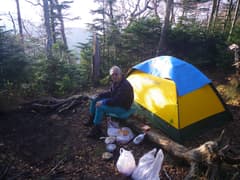 濡れた靴と靴下を脱いで乾かす(乾かないけど)。ウィスキーで乾杯し、夕食を食べる。日が暮れるとさすがに寒い。シュラフに潜り込む。明日の長丁場に備えて、眠りについた。