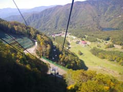 山頂駅に着くと、ロープウェイで上がって来た観光客で大賑わいだ。駅の運転室で片道乗車券を買い、ロープウェイ(というかゴンドラ)の下り線に乗り込む。途中の紅葉が一番鮮やかだった。