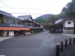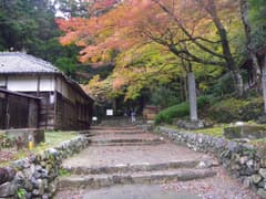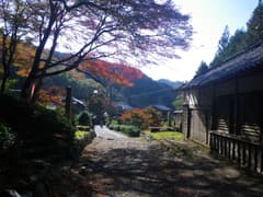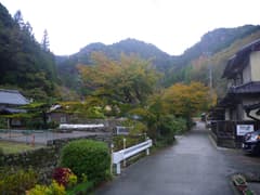 バスは山間に入って、鳳来寺バス停に8:23着で下車。ここが鳳来寺の表参道の入り口で、数軒のお土産屋が小さな門前街を成している。「鳳来寺山もみじまつり」の幟が立ち並び、観光のハイシーズンのようだ。ただし、朝早いせいか、人影はほとんど見かけない。