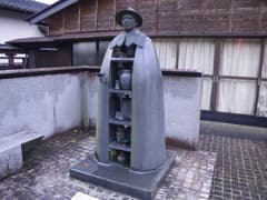 山間に並ぶ民家の間を通って、狭い車道を歩く。観光スポットらしく、道端には伝説に題をとった彫刻や鳳来寺を訪れた芭蕉、山頭火、牧水ら文人の歌碑が点々と並び、それらを見ながら散歩するのはなかなか楽しい。
