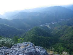 鳳来寺山に戻り、鷹打場への稜線を辿る。緩く下ると天狗岩で、岩場から山麓の眺めが良い。東屋があるが、ここも老朽化して、ロープが張られて使用禁止になっている。全山、随所でリニューアルが必要だな。