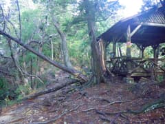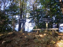 奥ノ院から、これも朽ちかけた東屋を経て、鳳来寺山の頂上までは僅か10分程の緩い登りだ。頂上は樹林に囲まれて展望はない。東海自然歩道の道標があり「棚山高原3.8km」と書かれている。そちら方面に少しだけ足を延ばして、瑠璃山まで行ってみることにする。