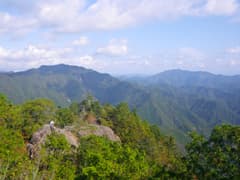 稜線を緩く辿ると直ぐに小岩峰があり、木の階段を登ると「瑠璃山」の表示がある。小岩峰に後ろから回り込んで登ると(簡単に登れる)、北側に奥三河の山々の展望が開ける。穏やかで特徴がない山並の中にあって、宇連山(うれやま)と三ッ瀬明神山は根張りが大きな山容で、抜きん出て立派だ。あの二座は登ってみたいかも。