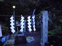 日影になった小さな谷の底は、空気がひんやりと冷たい。車道から渓流沿いの細い山道に入ると、ハイカーさんが一列縦隊となって歩いて行く。まるで小学校の遠足に混じったみたいだ。途中には琵琶滝がある。水垢離場のある小さな滝で、夏ならば滝行も涼しくていいかも?頂上へ直接向かうルートを分けて、ハイカーさんの数もようやく落ち着く。