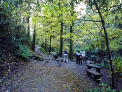 金比羅台からは谷に下って、渓流沿いの舗装道を歩く。なかなか急坂で、足元が覚束ない観光客の中にはこけちゃう人も。のんびり歩いて車を置いた高尾山口駅まで戻った。