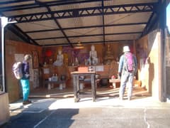 神変大菩薩像の上には不動明王像がある。次々に石像が現われて、一同大喜び。この不動明王には特に年号が刻まれていないが、先の二つの像と同じ時期の物では、とはKさんの推測。さらに石祠をいくつか見て登ると、程なく金剛萱の頂上に到着した。