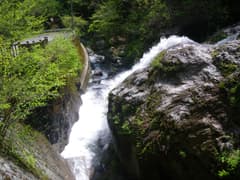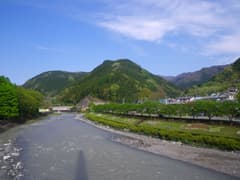 眺めはいいが、長時間の舗装道の歩行はやはり疲れる。2時間歩いて、ようやく神流川本流沿いのR462に出、さらに40分、国道を歩いて万場に戻る。万場の町中は人出で賑わい、お祭りの雰囲気が盛り上がっていた。神流川公園の入口には駐車場の空きを待つ車の列ができ、神流川の河原では大勢の観光客が水遊びに興じていた。