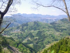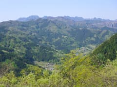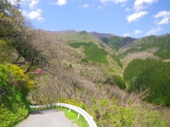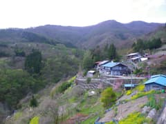 昼食を食べた沢から少しの距離で持倉の集落に入る。神流川支流の船子川の奥深く、赤久縄山の中腹、標高900m圏に僅かばかりの耕地が切り開かれ、数軒の民家が点在する。集落の正面には新緑に覆われた谷がゆったりと開け、遠く二子山を望んで素晴らしい眺めだ。「天空の里」とも呼ばれているのも頷ける。