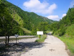 駐車場には既に数台の車があり、その中にミニバイクを積んだ軽ミニバンが2台あった。以前からミニバイクには興味があるので、出発準備中のオーナーさんに話を伺う。今日はゲートを越えて松木川に釣りに行くそうだ。セシウムがあるので釣るだけだけどね、と言いつつ、ミニバイクに跨がってとことこと発進して行った。ああいうバイクはいいなあ。