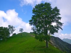 しばらく休んだのち、沢入山に向かう。稜線の笹原にぽつんと一本だけ生えたブナがあり、たくさんの実をつけていた。鉱害を生き延びたブナなのだろうか、それとも植生復活の先駆者なのだろうか。