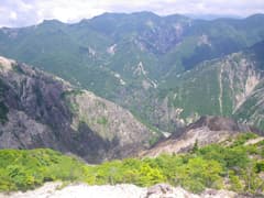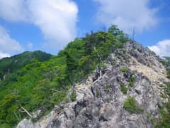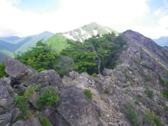 風化してボロボロの岩稜を通過すると、松木川に向かって崩壊壁を見せる沢入山への急な登りとなる。スケールは小さいが、ちょっと北ア的な景観の稜線だ。