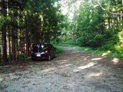 路肩の崩壊や落石に注意して1km程走るとY字路があり、右が赤湯温泉道でゲートがあり、鎖が張られて通行止めになっている。Y字の左の道を少し下った所に駐車スペースがある。ここまで小日橋の駐車スペースも含めて1台の駐車もなく、人気の温泉があるのでもっと車が多いかなと思っていたが、この季節は意外と人の訪れが少ないようだ。