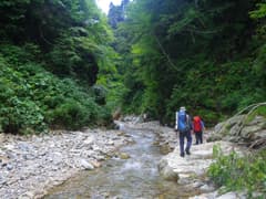 秋田の山歩きを諦めた代わりに、Mさんからのお誘いで上信越の沢登りに同行することになった。赤湯温泉から入渓して清津川の本流を遡り、途中でテント泊。最後は白砂山に詰め上がって野反湖に下山するというロングコースだ。このところ天候が安定し、大きな渓谷の遡行には絶好の機会。Hさんも参加して3人パーティで出かけて来ました。