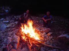 ねぐらを整えたら次は流木を集めて焚き火を熾す。焚き木は良く乾いていて、すぐに盛大に燃え始めた。火を囲みながらワインと日本酒で宴会。夕食はMさんが飯盒で炊いた飯に麻婆春雨だ。食後もウィスキーをちびちび嘗めながら宴会。眠くなったところで、各自の寝床に潜り込む。夜半から冷えたが、薄手のフリースを着込めばOK。川音をBGMにぐっすり眠ることができた。