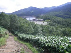 あとは野反湖へ一般登山道を下る。白砂山から堂岩山にかけては花が多いが、バスの発時刻に間に合わないといけないので、写真を撮っている余裕はない。堂岩山に登り返して、頂上で一休み。あとは概ね下りだが、小さな登りが意外と多く、疲れた足には応える。ハイカーさんが多数休憩中の水場もそのまま通過。地蔵峠で一服する。バスには余裕で間に合いそうだ。ハンノキ沢から最後の登り返しをヒーコラ登って、定刻の30分前に野反湖バス停に到着した。自動販売機で冷えたペットボトル飲料を買って喉の渇きを癒す。