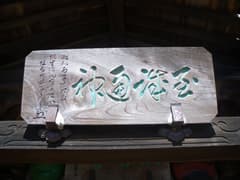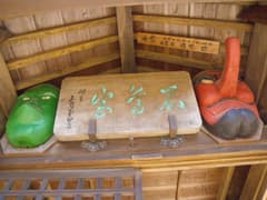 石尊宮の軒先には「石尊宮 桐生三省堂印房」と刻まれた扁額と平成十三(2001)年奉納の書き付けのある烏天狗・大天狗対の面が掲げられている。また、「至誠通神」の扁額もあり、「昭和…桐生織物同業組合…」と刻まれている。これらは古いものではないがなかなか立派で、石尊信仰を伝える貴重なものだと思う。