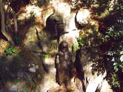 釈迦岩展望から、改めて釈迦岩を眺める。こちらからは背を向けた仏像のように見える。