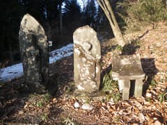 両女は慶応四(1868)年閏四月六日 権田村における西軍暴挙の難を避け 七日市藩へ逃れる為地蔵峠を目指したるも 山中に道を失い遂に力尽き 同八日この地に近き谷間において自害せり 遠く悲しき歴史に思いを馳せこの地に祈念碑を建て永くその霊を悼む