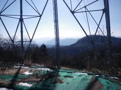 雪を踏んでゆるゆる登ると送電鉄塔(西群馬幹線41)に着く。南側に展望が開けて、妙義山の眺めが良い。だいぶ雪が深くなって来たので、ここでスパッツを着ける。
