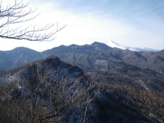 雑木林に覆われているが、北面の絶壁の上に出張った所に立てば、角落山や浅間隠山、鼻曲山、浅間山の眺めが良い。また今日は良く晴れていて、上信越国境稜線の白銀の山々が遠望できる。しかし、下を見ると足元がすっぱり切れ落ちているので眼が眩む。雪で足を滑らせて転落しない様に注意。