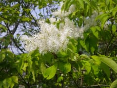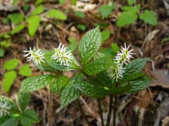 経塚山から北に続く経塚山稜を辿る。適度にアップダウンがあり、楽しく歩ける道だ。新緑のあちこちに、アオダモのぽわっと広がった白い花が咲いていて目を惹く。
