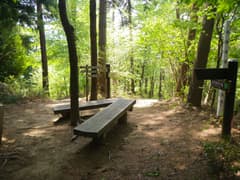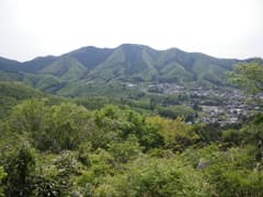 やがて傾斜が増し、樹林を切り開いた斜面をジグザグに登ると経塚山の頂上に着く。山麓を俯瞰し、川内の町並みや桐生川、鹿田山丘陵、広沢丘陵が一望できる。丸太のベンチもあり、のんびり腰を落ち着けられる。なかなか良い雰囲気の山頂だ。
