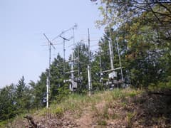 小倉山から縦走路を辿り、杉林の中を登るとあっけなく笹久保山の頂上に着く。八木アンテナが立ち並び、囲いの柵の中に石祠が祀られ、ちょっと気の毒な感じ。