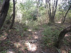 ここから僅かな登りで小倉山の頂上に着く。樹林に囲まれて展望はないが、草地に陽が差し込んで明るい雰囲気の山頂だ。南麓の崇禅寺からも良い山道が登って来ている。Kさんによると、崇禅寺の秋の紅葉は見事だそうだ。