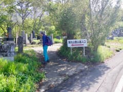 案内看板にしたがって車道を登ると左手の墓地に入る道があり、再び案内看板がある。この周辺に路駐しているハイカーさんも多い。入口には「従是頂上七拾弐丁 文久三(1863)癸亥…」と刻まれた石の道標が建ち、この道が昔ながらの登拝路であることを示している。