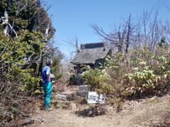 地形図には御嶽から南の尾根を下る破線が記載されているが、密藪に覆われてそれらしい道は全く見当たらない。大人しく往路をそのまま辿って、高社神社に戻った。