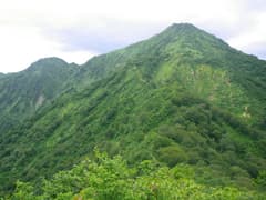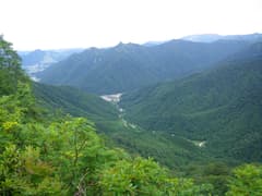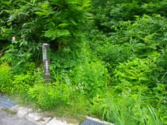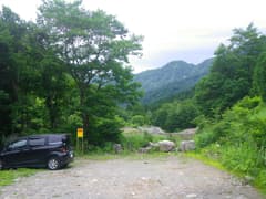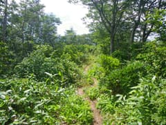 すぐに吾策新道入口の標識が立つ登山口に着く。標高769mと記してあり、万太郎山頂上までの標高差は約1200mだ。コースタイムは登り4時間半、結構タフな登りである。出発がだいぶ遅れたので、ペース上げ気味で登り始める。今日は高曇りで涼しいのは幸いだ。