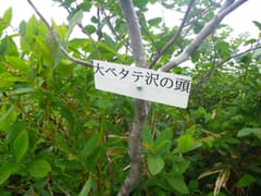 樹林の中をひと登りして、大ベタテ沢の頭に到着。登山道の途中のような場所で、Gさん山名標があるだけだが、展望は良いし、登り半分の地点なので休憩とする。ここまでコースタイム2時間10分のところを1時間25分で来たから、出発の遅れはかなり挽回できた。