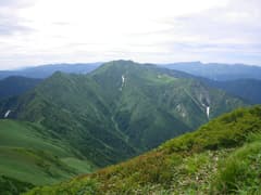 頂上からは正に360度の大展望。東方向には、V字に切れ込んだ万太郎谷と雪渓が細長く残る赤谷川本谷に挟まれて谷川連峰主稜線が続き、谷川岳、茂倉岳に連なる。その奥には巻機山、燧ヶ岳や至仏山、日光白根山、武尊山、皇海山が遠望できる。