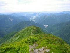 南には赤城山や榛名山、妙義山、浅間山など群馬県北の主要な山を一望。西には仙ノ倉山がどっしりと構え、背景には苗場山の平らな頂きが望まれる。北面には越後湯沢の市街を見おろし、遥か遠くに米山の山影まで見える。頂上は爽やかな風が吹き渡って涼しく、酷暑の下界とは別天地。夏にこれだけクリアな展望が得られるのは、かなり運が良い。