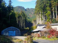 「二股山登山道入口」の標識に従って、蔵もある大きな民家の左手から作業道に入る。行く手には二股山の双耳峰が聳え、北峰頂上のTV中継所の白い建物も視認できる。小さな山だが、結構険しい。