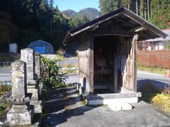 下沢登山口の前のお堂を覗き込むと、赤いちゃんちゃんこでぐるぐる巻きにされて、どんな像かよく分からないが、延命地蔵が祀られている。お堂の傍らには「安政四丁巳(1858年)十一月 女人講中九人 下内」等と刻まれた十九夜塔や如意輪観音像が並び、古い民間の信仰を伝えている。