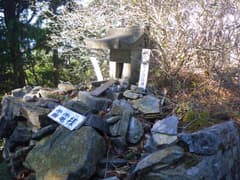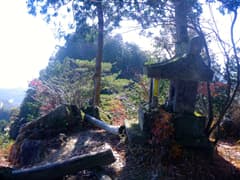展望地から僅かに尾根を登ると、雷電様の祠がある。石垣の上に祀られた石祠の背後には立派なヒカゲツツジの株があり、春の開花の時期に訪れるのも良さそうである。